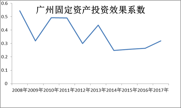 近年来广州固定资产投资效果系数一路下行,从2008年的0.55下降到了去年的0.32,不过其投资效率也就比北京、上海略低。