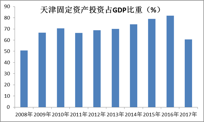 天津固定资产投资效果系数一路下跌,2007年此数值还有0.69,说明固定资产投资每增加一元,当地GDP能增长0.69元。而到了2017年,此数值变成了0.063,投资固定资产一块钱,去年只能拉动0.063元GDP,固定资产投资效果缩水了十倍左右。