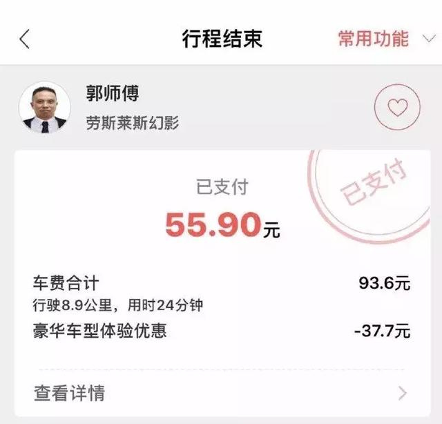 从上面这位用户发布的微博图片中可以看到,8.9公里、24分钟的行程优惠了37.7元,最终仅仅支付了55.9块钱。