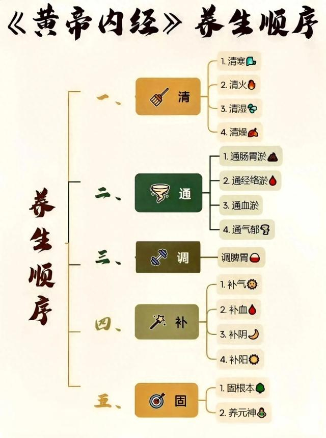 中医养生调理顺序:一排二通三调四补五固!