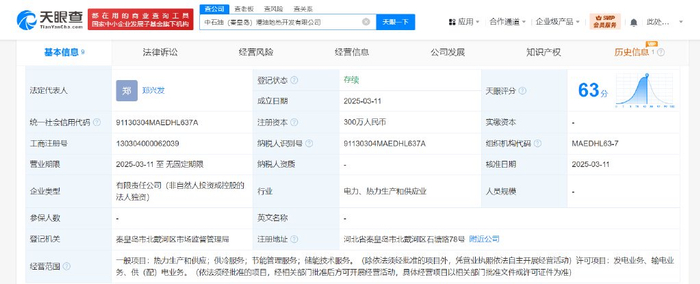 天眼查App显示,近日,中石油(秦皇岛)港油地热开发有限公司成立,法定代表人为郑兴发,注册资本300万人民币,经营范围含热力生产和供应,供冷服务,节能管理服务,储能技术服务,发电业务、输电业务、供(配)电业务。股东信息显示,该公司由中国石油(601857)旗下中石油太湖(北京)投资有限公司全资持股。