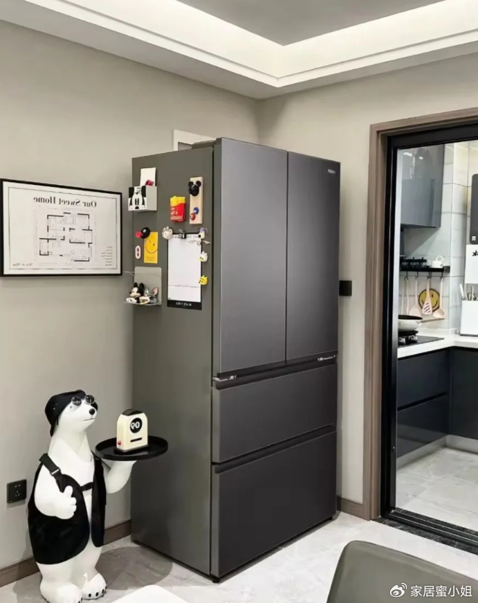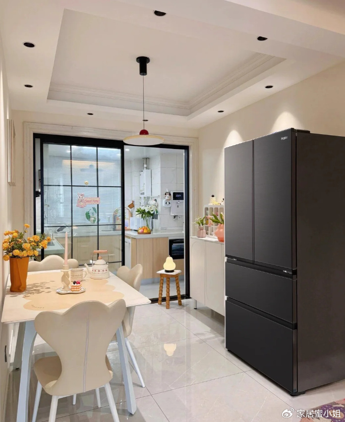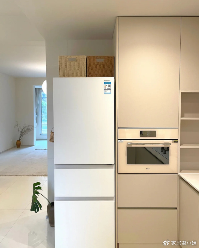 而爸妈家的冰箱则采用了更高效的保温材质,使得它在保持相同容积的同时,占地面积却更小。它仅仅是一台三开门冰箱,占地不到1㎡。这种小巧的设计不仅节省了厨房空间,还使得整体布局更加美观大方。