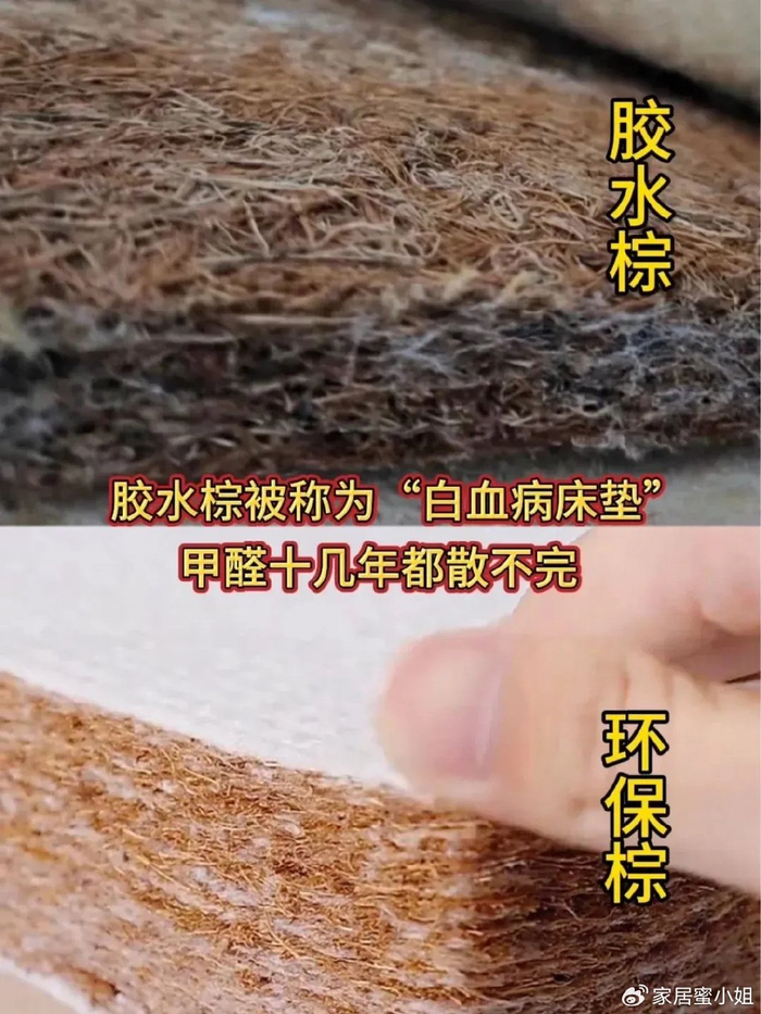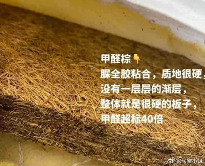 如果你的床垫儿硬的像一块儿砖,而且还很难分开,甚至扒开后还能看到黏连的胶水,那么你已经喜提劣质甲醛胶水棕床垫了。