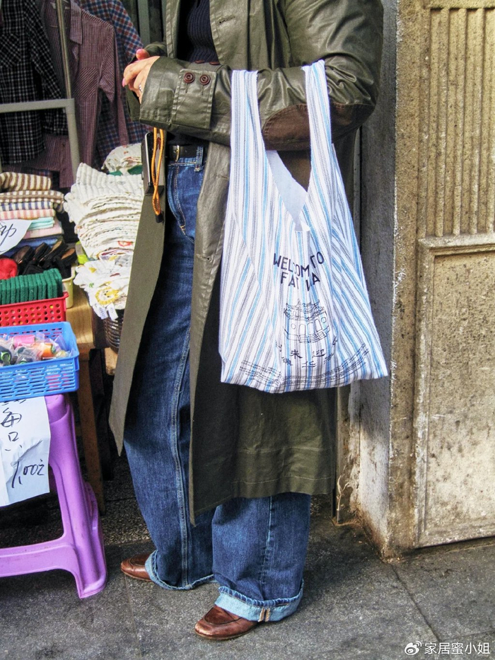 这样的手提袋可比塑料袋好多了,不用的时候就放在包包里也不占地方,关键咱也不花钱。