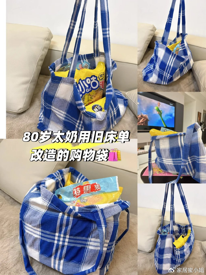 去超市的时候,能少买塑料袋,就少买塑料袋。咱们可以用床单直接做个手提袋,购物时带去超市,也为环保尽份力。