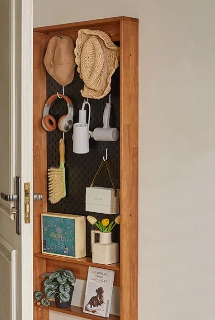 网友利用门后面的空间,在这里装上了洞洞板,没有想到收纳效果这么好!