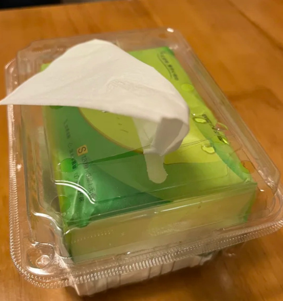 比如,我们可以将塑料盒当做是抽纸盒去使用,只需要在上面开一个小孔就可以,然后每次使用时将纸巾放入到里面,拿取非常方便。