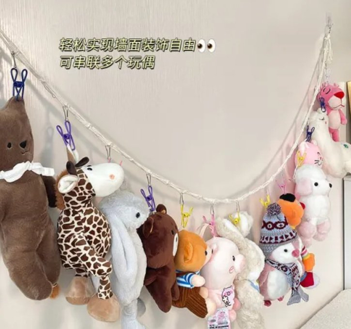而对于这些毛绒玩具的收纳,我们一定要多下功课,在这里建议大家可以购买一个三角网兜,