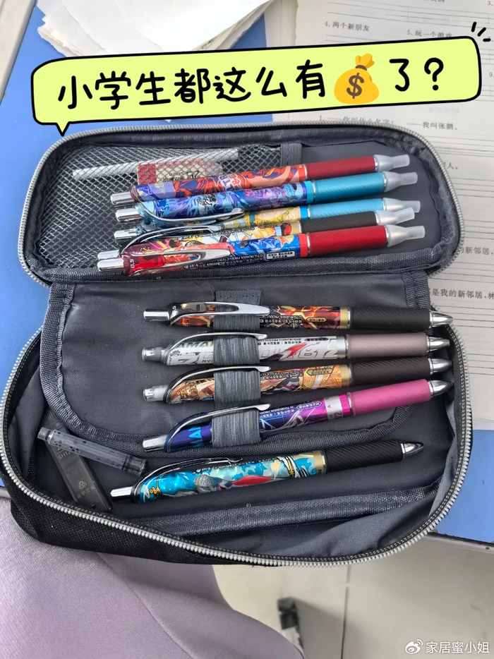 以及设计的比较吸引人的笔,价格会更贵,你可能想象不到一支普通的中性笔,价格上百元,就是因为是动漫联名款,让很多小学生盲目的推崇。
