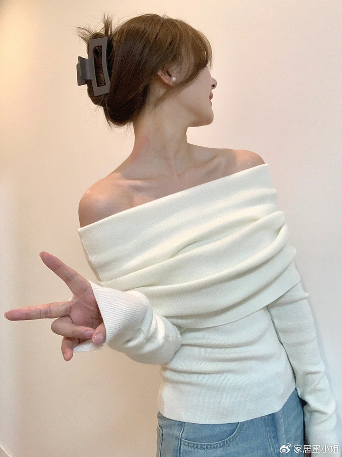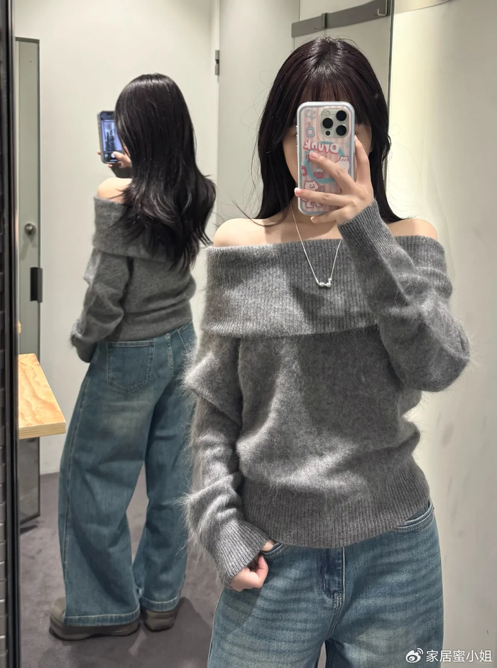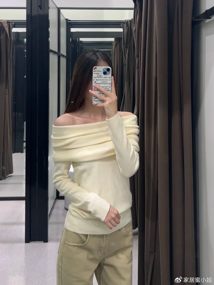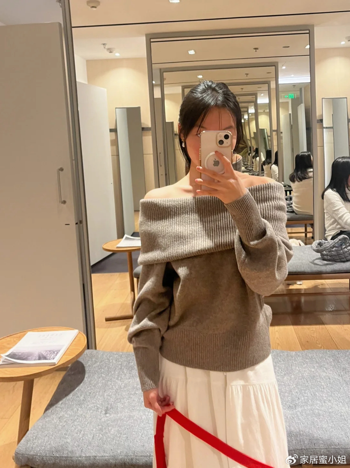 一字领的毛衣虽然好看,但是奉劝大家千万不要随意跟风购买,因为穿在身上所有的缺点只有自己知道,一字领的毛衣虽然可以露出肩膀,可以秀出好的身材,