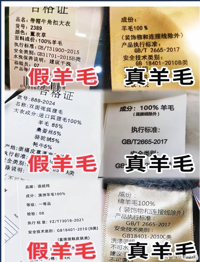 而羊绒含量必须在95%及以上,才能叫做纯羊绒衫,纯羊毛衫含量必须是100%。而如果成分标签里面添加产地和粗细的都是不合规的,