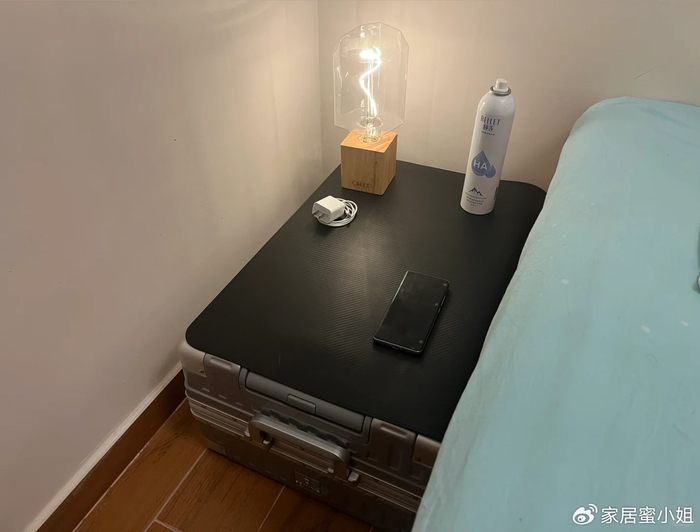 如果你总是担心买到密度板的床头柜,又或者是租房子需要用床头柜,其实根本没必要花钱去买,如果你正好有一个闲置的行李箱,正好可以用来代替床头柜。