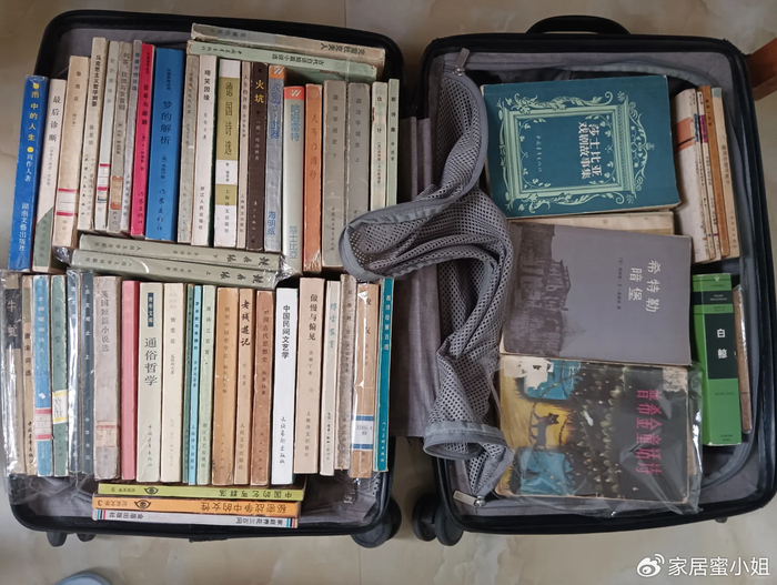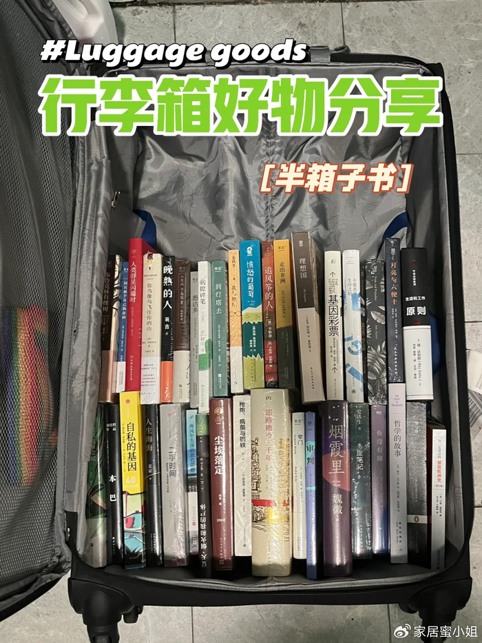 放在家里的行李箱没地方放,闲着也是闲着,还不如用它收纳书籍。