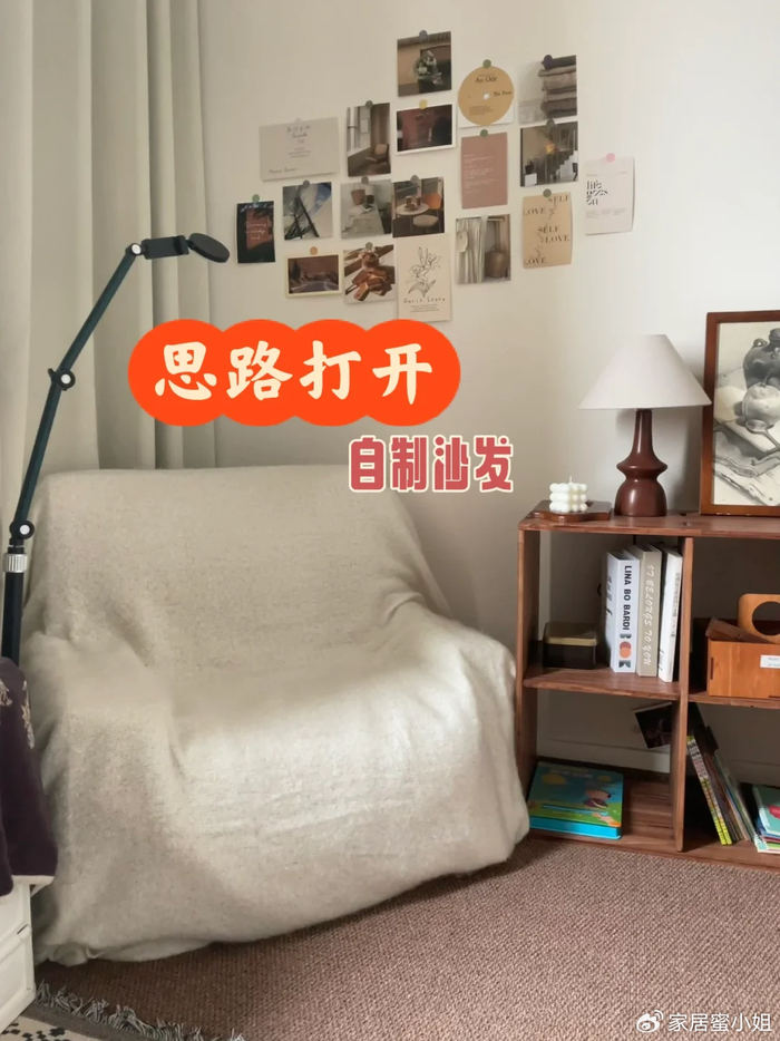 想要坐得舒服,可以在沙发背上加一个海绵枕头。之后再用海绵包裹,然后再拿出家里闲置的布料,直接铺在上面,就得到了一个小沙发。