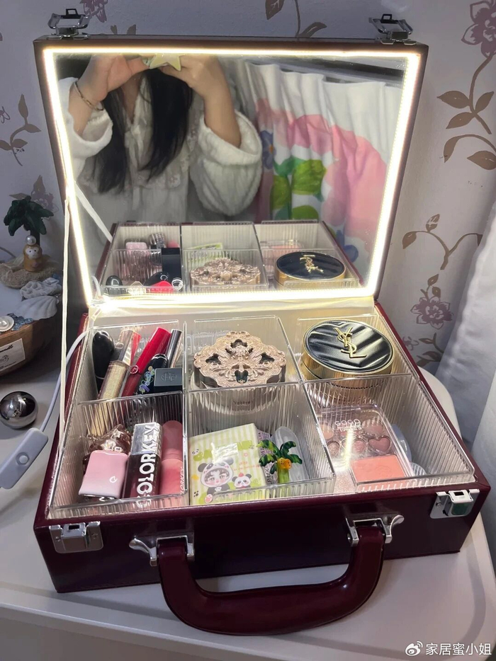 主要是原先的内盒第2层,每次拿东西都非常不方便,想要的东西还找不到,而现在就方便多了,化妆品放在哪里一目了然,而且还超级能装。