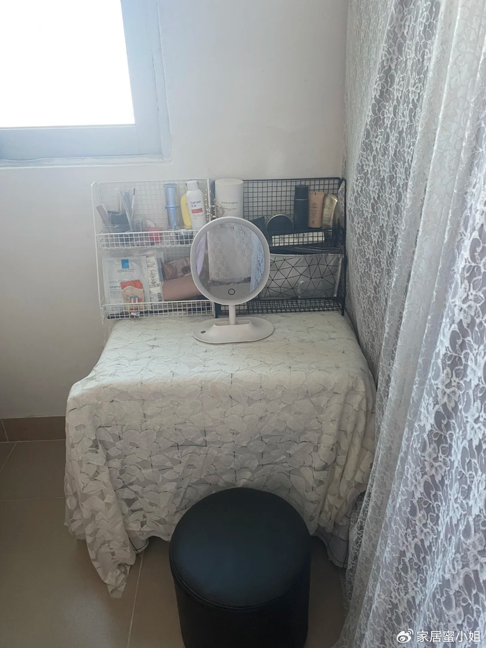行李箱里面可以装不常用的东西,外面就可以摆放睡觉前使用的东西。如果没有帘子,你也可以在行李上箱上摆放一张亚克力板。
