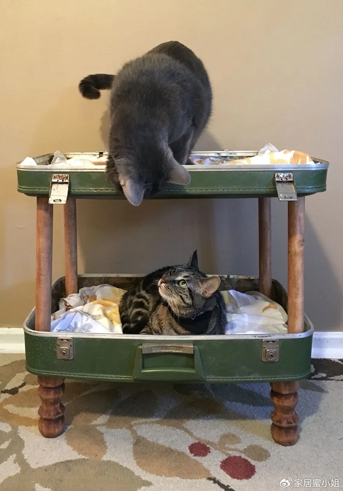 如今越来越多的人都非常喜欢宠物,我更喜欢把它们养在家里。如果你也喜欢养宠物,正好家里又有闲置的行李箱,你就可以用它改造成一个双层的猫窝。