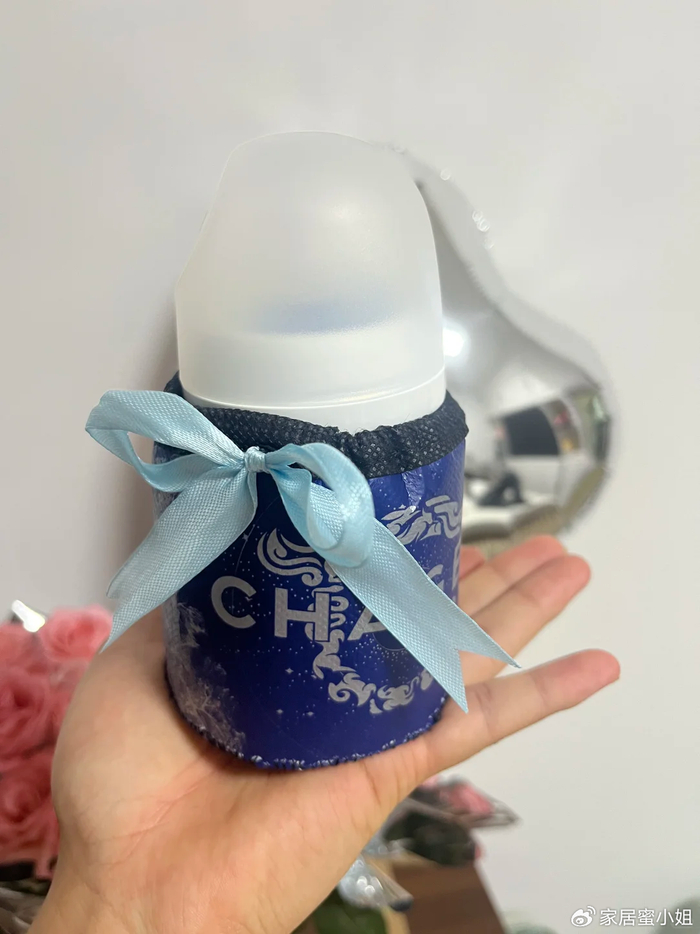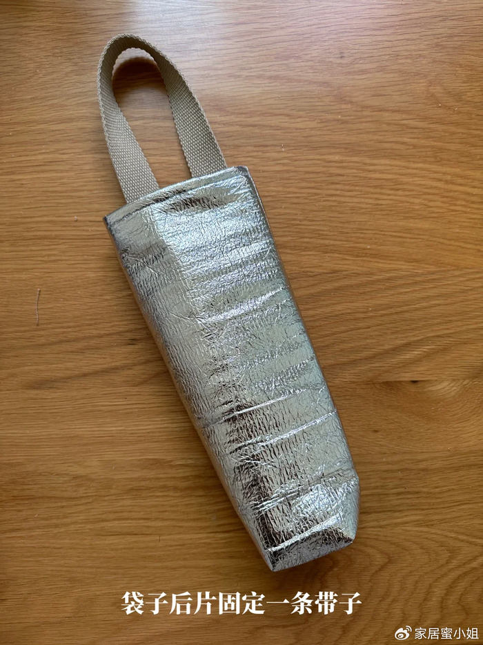方法也很简单,只需要按照奶瓶的高度,将保温袋裁剪下来一条。然后围绕奶瓶转一圈并裹紧实。