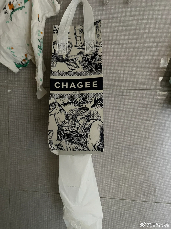 我们可以在保温袋的底部开一个小口,然后倒放纸抽,或者直接放卷纸,然后挂在卫生间,这样一来洗澡的时候就不担心会弄湿时间了,而且还可以把它挂在墙上。