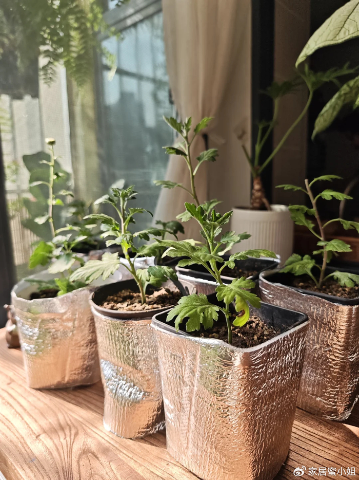 方法很简单,只需要将外卖袋裁剪一下,然后把整个花盆包裹住,就能起到保暖的作用了,也可以帮植物熬过寒冬。