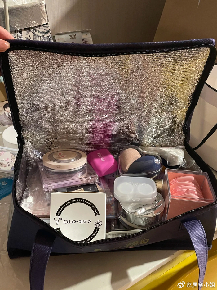 有些外卖袋还有拉链,于是就可以用来收纳化妆品。