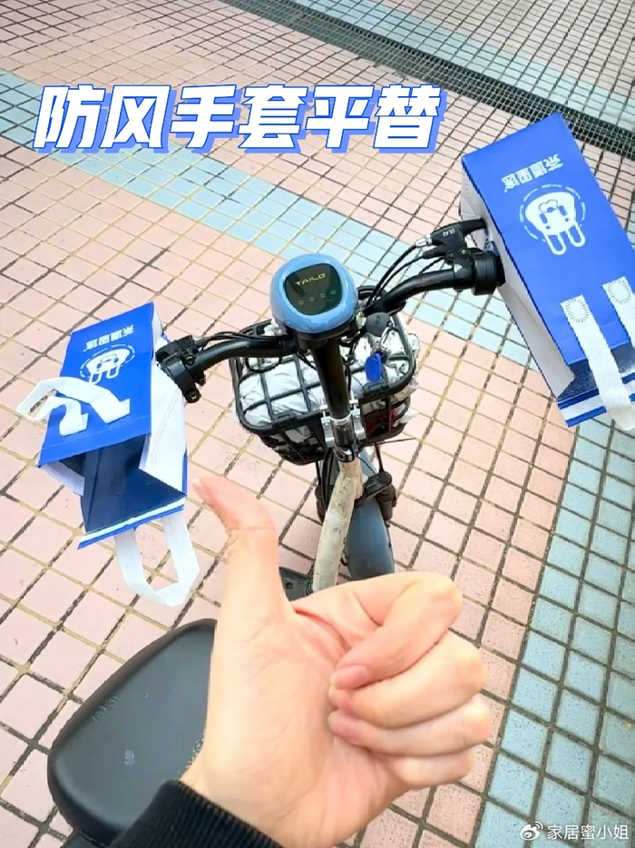 另外,冬天骑车没有手套的朋友们,也可以用保鲜袋套在车把上,骑车的时候可以把双手放在里面,当个挡风手套也不错。