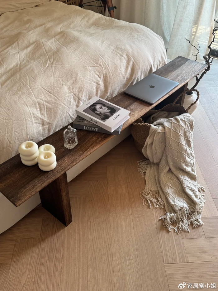 床尾凳也是很多网红家居博主,在拍照时会出现的氛围感家具之一,很多小伙伴也会学着在家中的卧室中添置一张床尾凳。