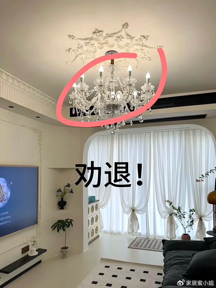 厚重的灰尘也会使水晶灯变得雾蒙蒙,使光照度不高,还不如选择简简单单的大白顶灯,省事省心。