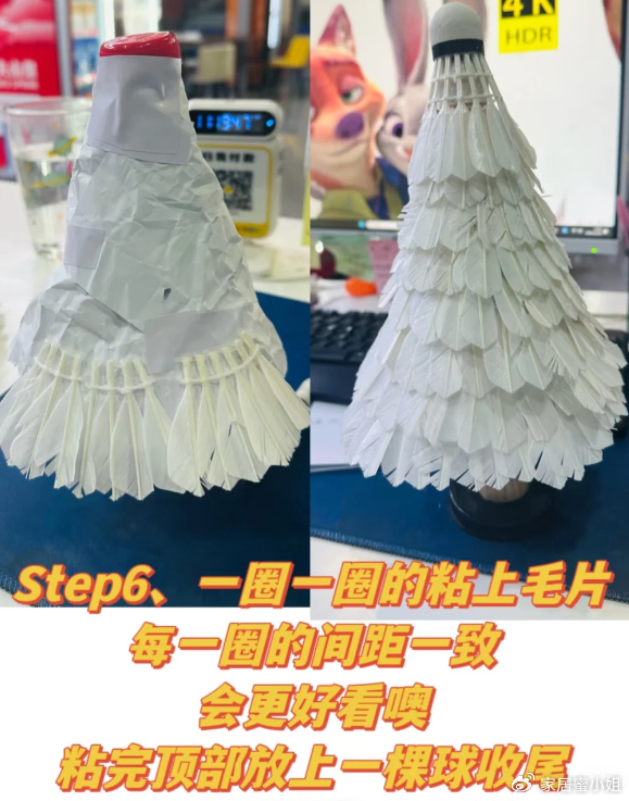 最近看到网友们用羽毛球diy了一个圣诞树,实在是太好看了。