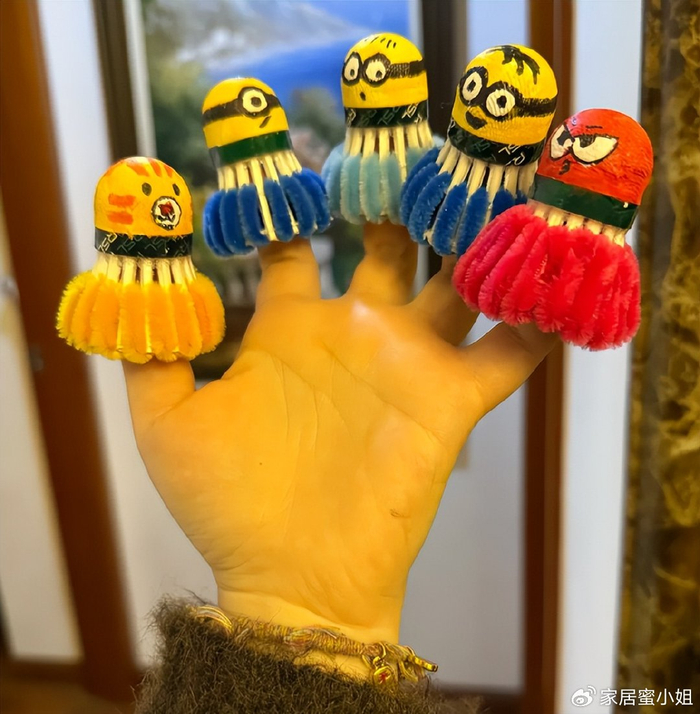 我第一次看到就被可爱到了,根本没想到居然是用废弃羽毛球改造的。