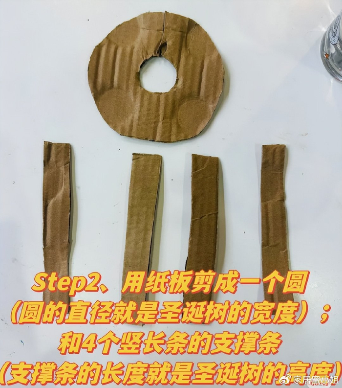 准备一些纸壳,把纸盒剪裁一个圆,四个竖条。