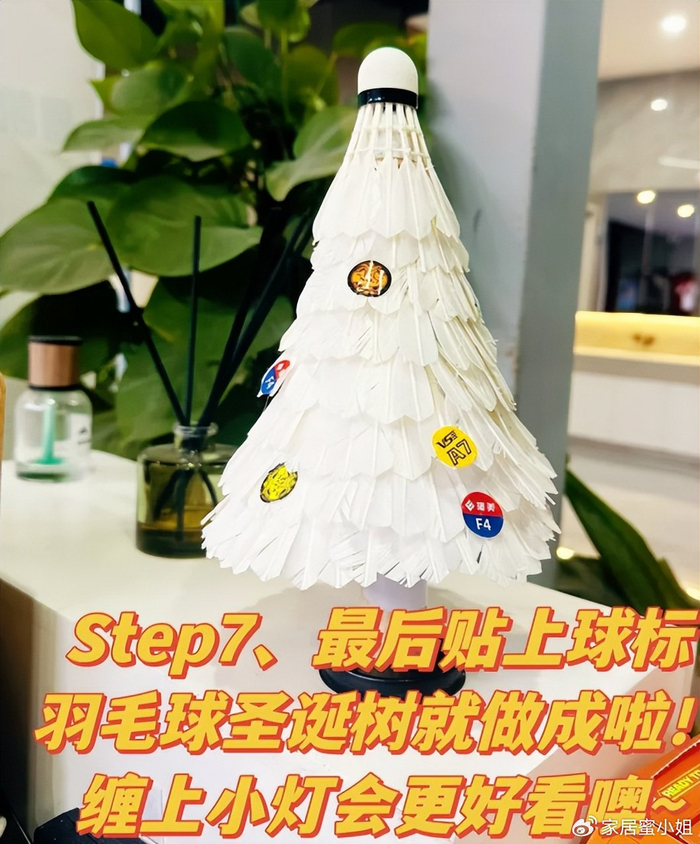 是不是很简单?一个好看的羽毛球圣诞树就做好了!