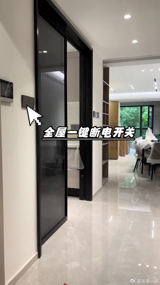 不如直接在家中的玄关处设计电源一键开关,将全屋的总电源开关设计在玄关,每次出门时直接一键开关家中电源,十分的方便。
