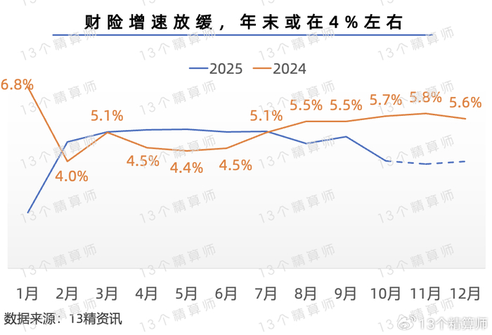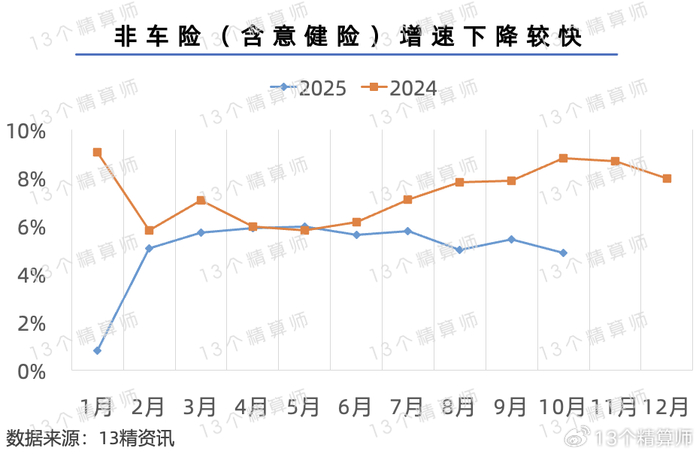 2. 非车险增速下降较快,2025年全年财险公司增速,或低于上年同期!
