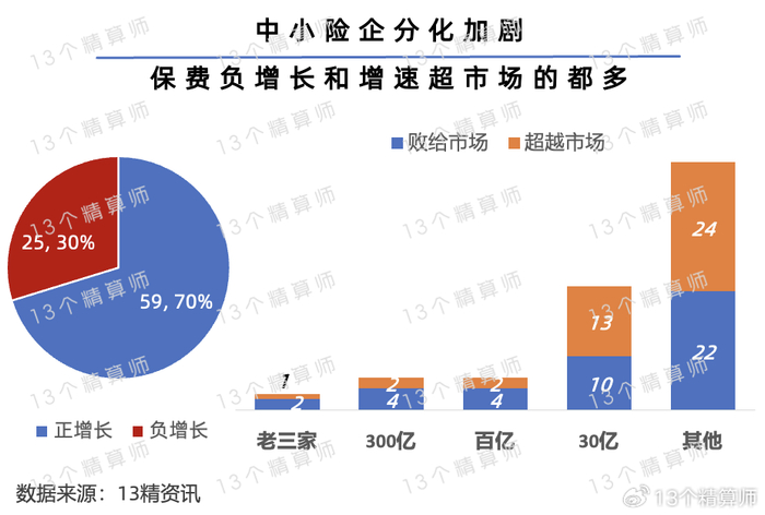 30亿规模险企中,10家公司保费增速低于市场,其中,7家都是负增长。