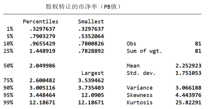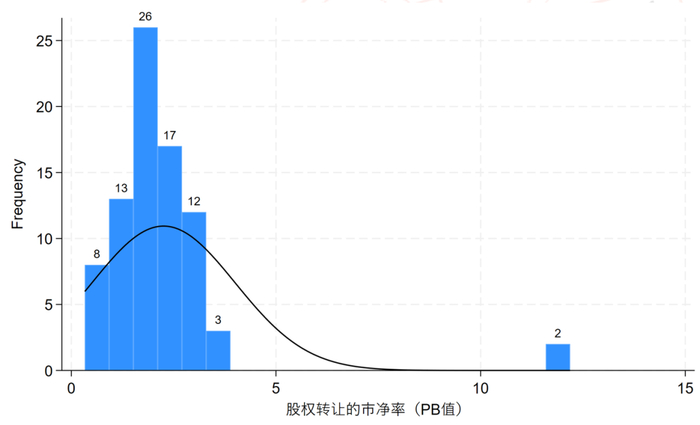 所有股权转让案例的市净率(PB值)平均为2.2。