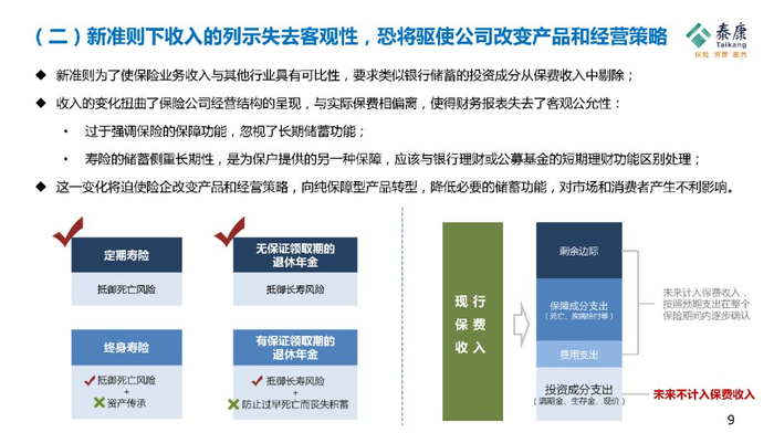 这种情况下,如果会计准则对保费的收入只承认保障的部分,那么就否定了保险在退休保障上提供的功能。