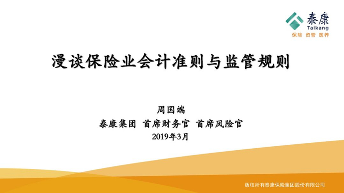 近日,泰康集团执行副总裁兼CFO周国端先生受邀参加“FT高端视点”活动并发表《漫谈保险业会计准则和监管规则对中国保险市场未来的影响》的演讲,清晰的解释了保险公司的价值也直拳面对当前行业的诸多问题,全程直球,让小编深受启迪,很想跟大家分享一下~