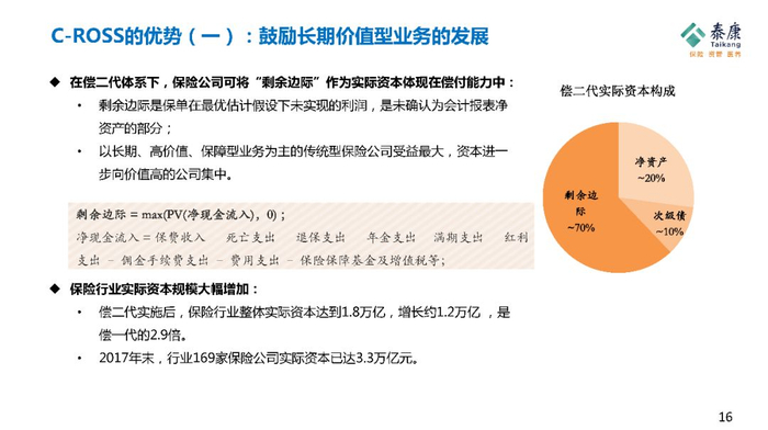 譬如泰康今年的剩余边际已经接近2000亿,我在董事会作报告,我说当我的剩余边际已经达到这个数字的时候,每年的边际利润释放超过100亿的时候,基本上我的投资应该开始要从相对报酬走向绝对报酬了。