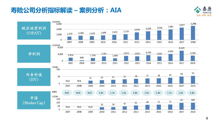 像平安,像友邦,像泰康,像太保这些经营比较好的保险公司,在管理上会非常重视两个指标:一个是税后的营运利润(OPAT),另外一个是剩余边际的释放。
