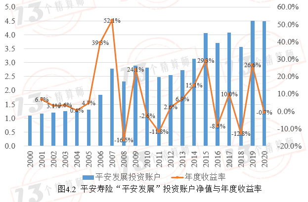图4.2给出了平安寿险“平安发展”投连险的年度净值及收益率状况。