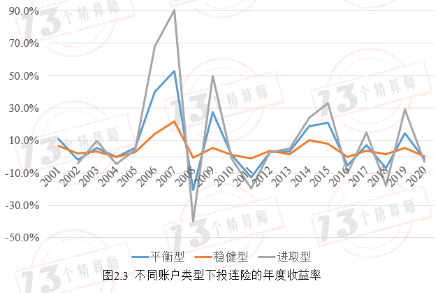 根据投连险产品的风险偏好,“13精”将投资账户划分为三类,分别是进取型、稳健型和平衡型。