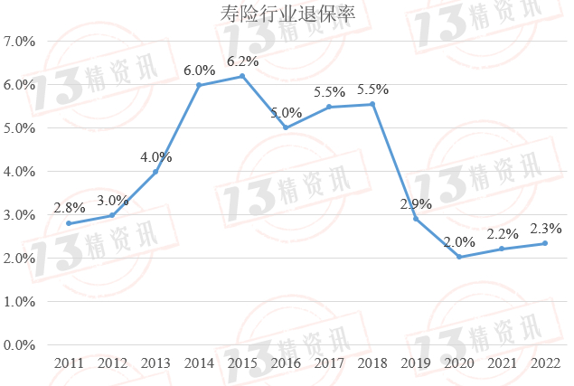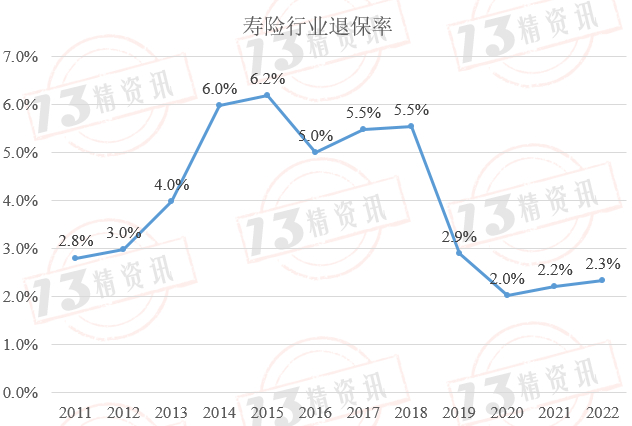 2022年寿险行业退保率为2.3%,已经连续反弹增长两年了,但仍处于历史较低位置。