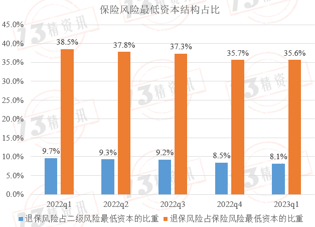 2022年偿二代二期开始披露量化风险的二级指标,对此我们可以进一步观察退保风险最低资本结构占比。