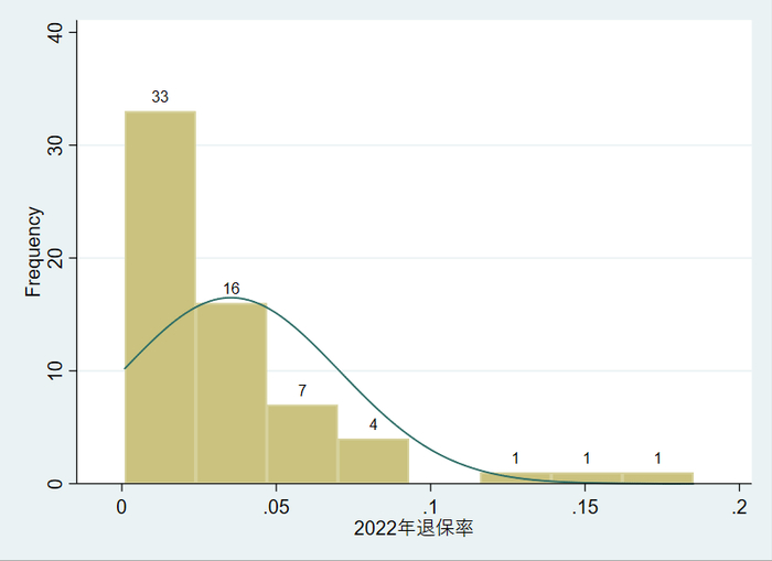 从分布图来看,寿险行业退保率存在着“长尾”特征。有24家公司退保率超出3%,其中有3家超过10%。