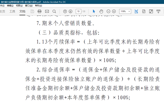 基于数据的可得性,“13精”调整了综合退保率指标的计算公式,剔除了万能险产品、投连险产品的信息,只是计算传统寿险业务的退保率。