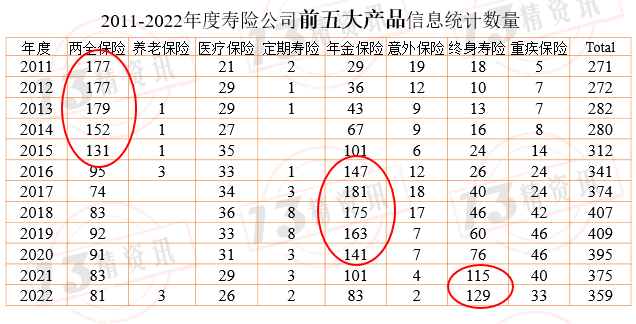 目前已经集齐从2011-2022年连续12个年度寿险公司4000余款的产品数据!