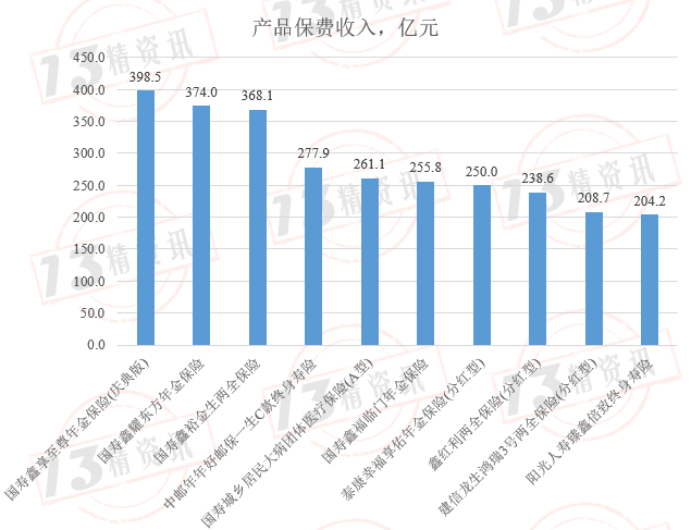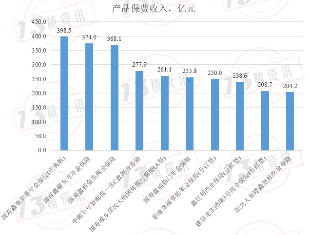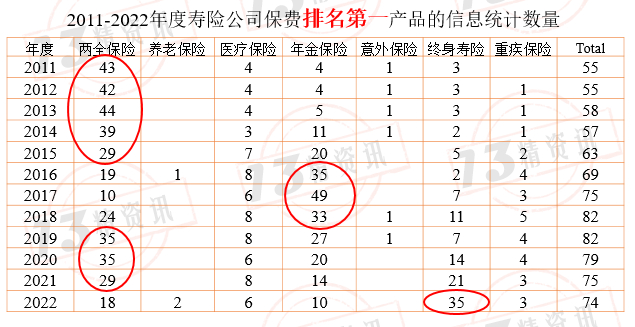 “13精”列出2022年度寿险公司保费规模排名前十的产品: