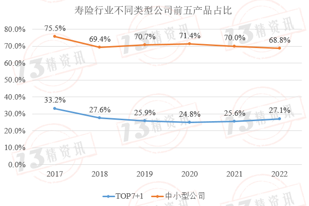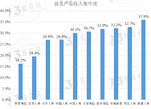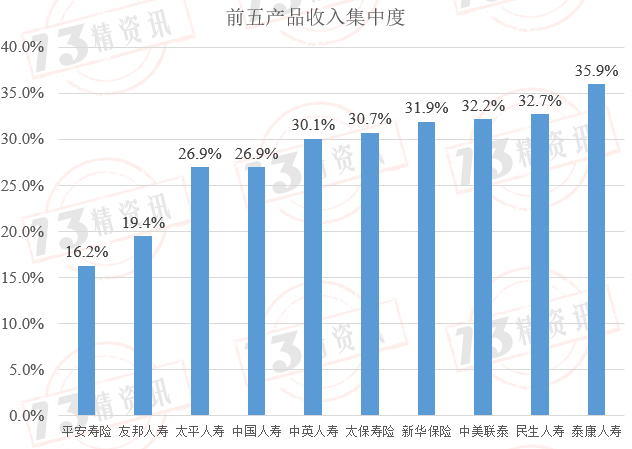 前五保险产品规模占比可以视为寿险公司产品集中度的一个衡量指标。