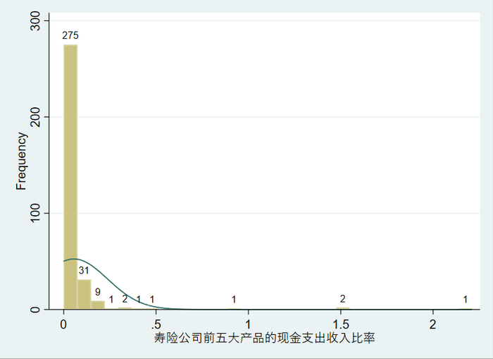 我们使用前五产品的退保金和保费收入指标,构造了寿险公司前五产品的现金流支付收入比率指标。